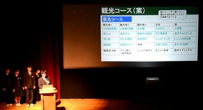 2月6日(金)に加計高等学校の体験活動報告会に参加しました。今年度も、高校生の体験活動を聞くだけでなく、中学校の活動報告もさせていただきました。3年生は、総合的な学習時間で学習してきたことをスライドにまとめたことを発表しました。